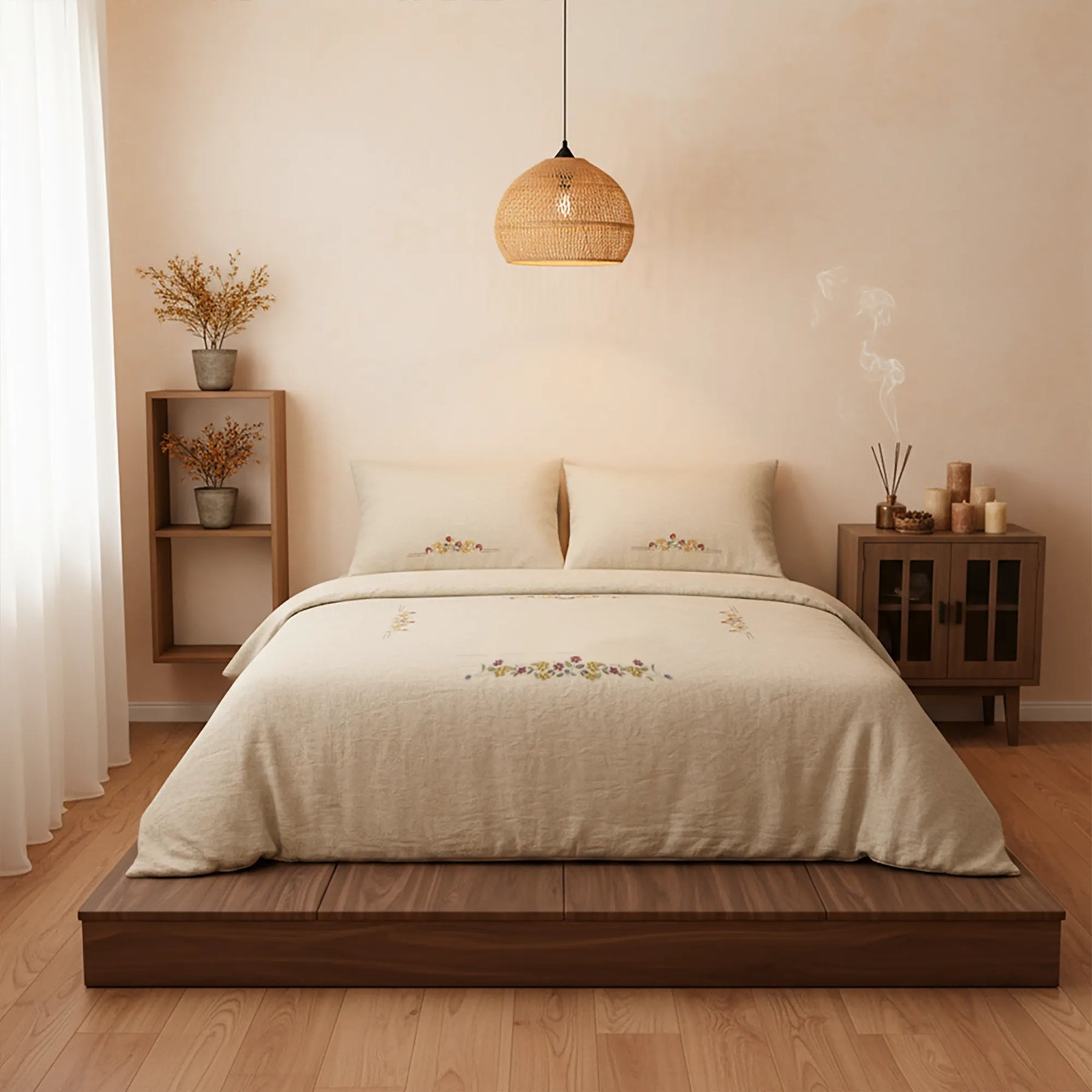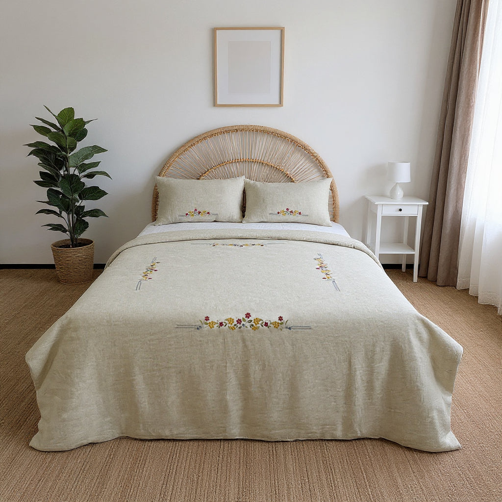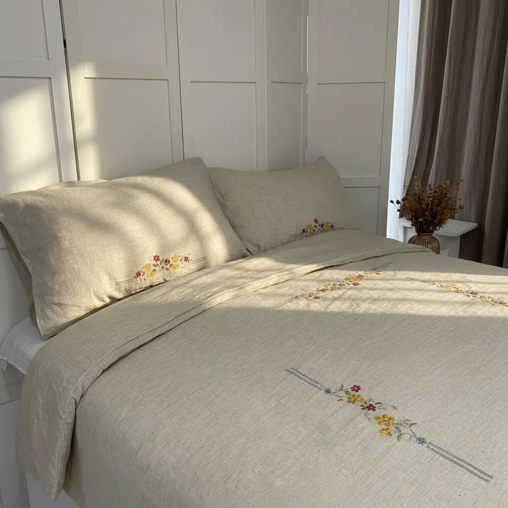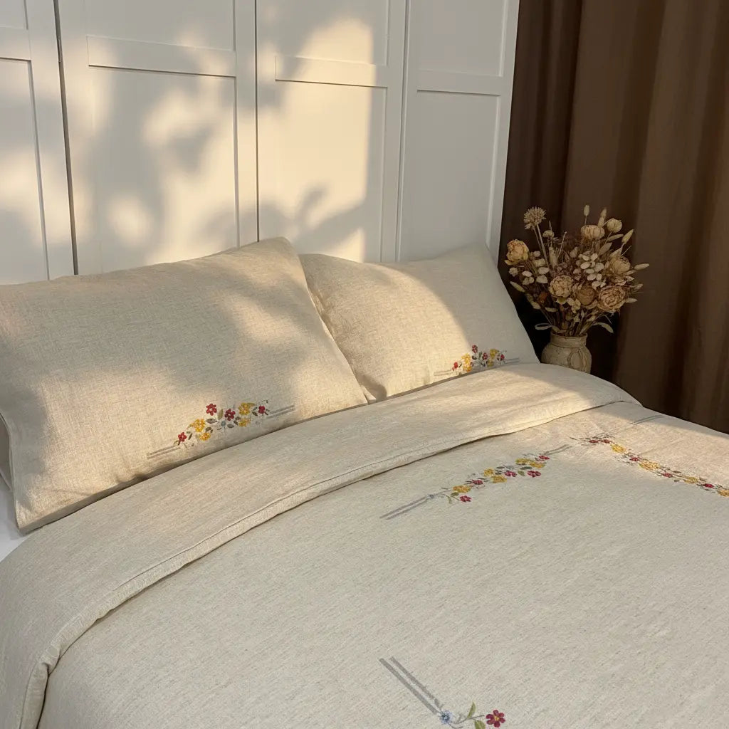 - Die Grundfarbe in Kombination mit der Stickerei erzeugt eine vielseitige Ästhetik, die sich problemlos mit verschiedenen Bettwäschestilen und Farbschemata des Raumes kombinieren lässt.