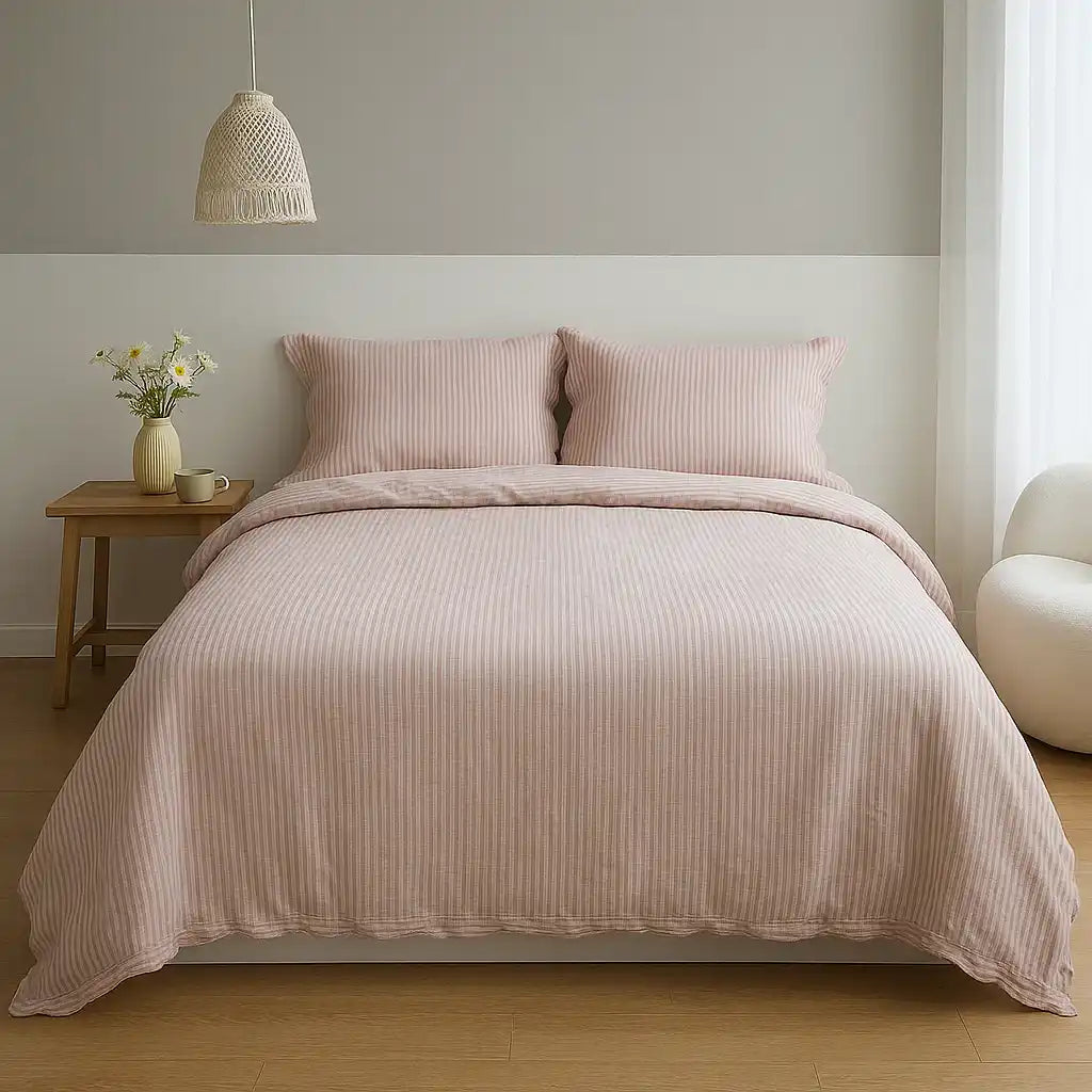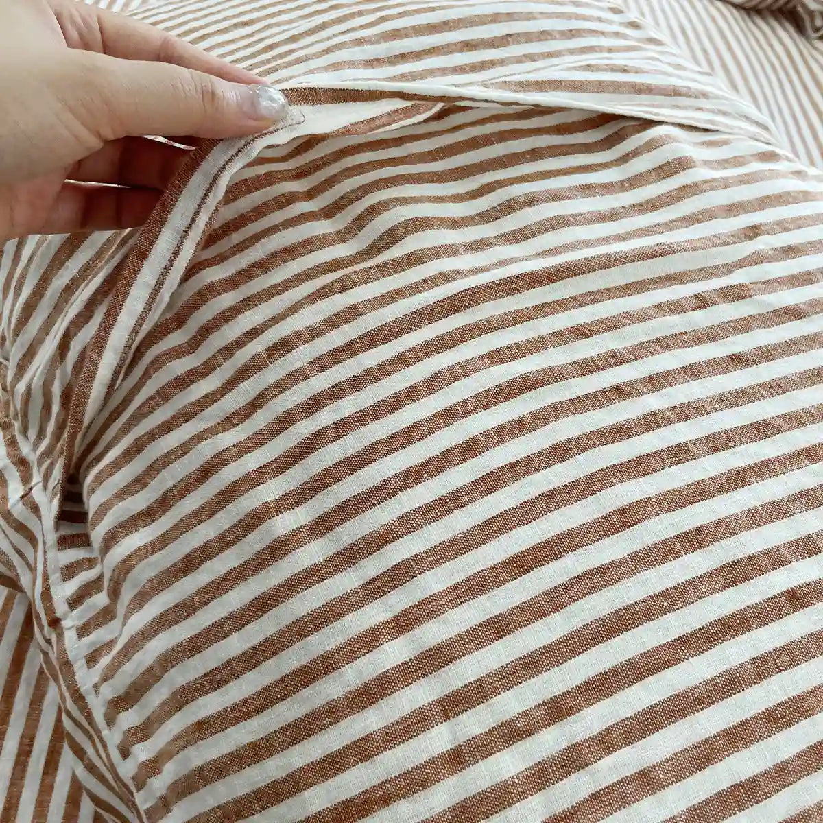 - Leichtes und atmungsaktives Leinenbettwäsche-Set mit eleganten Streifen für mühelosen Stil.