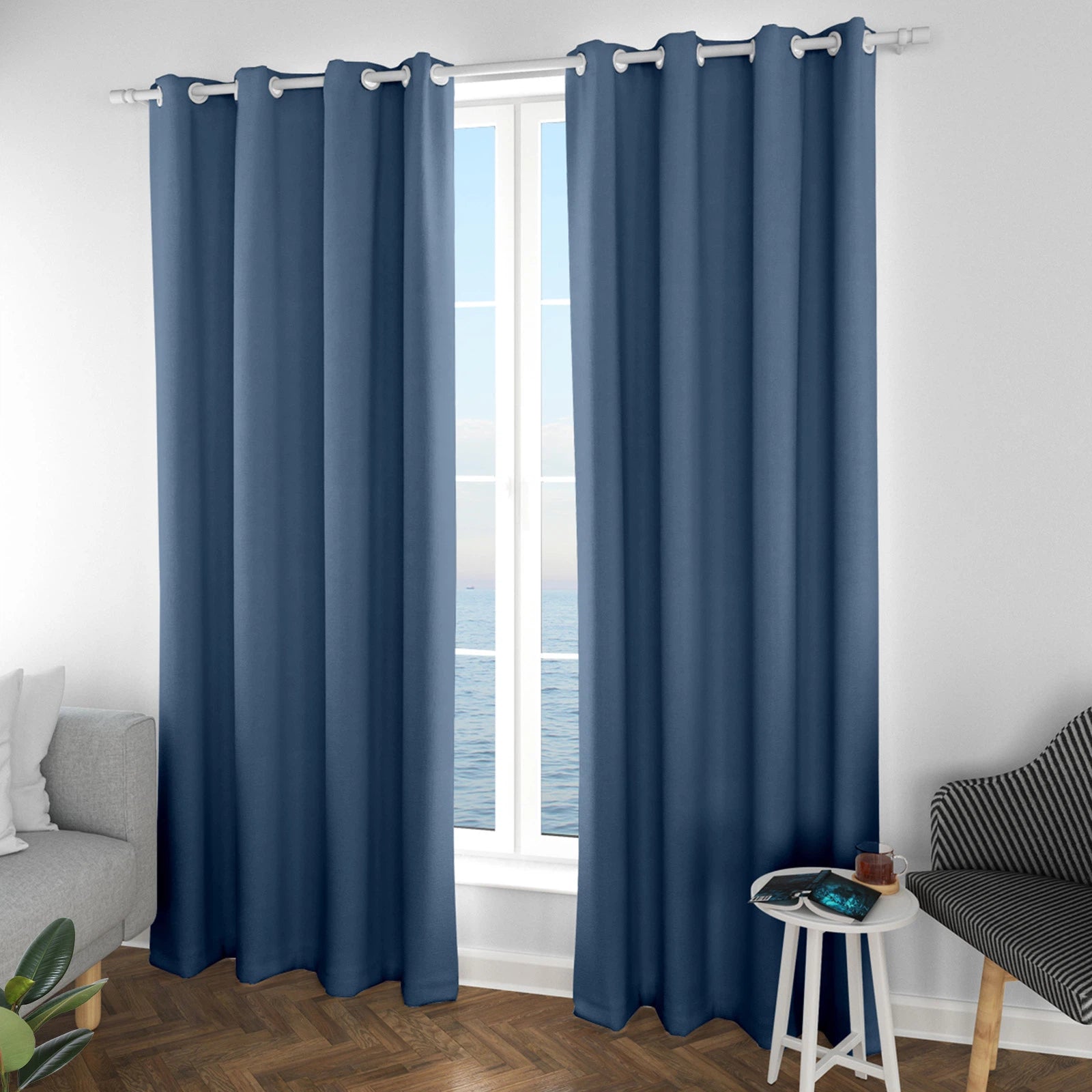 Maßgefertigter marineblauer Vorhang, 100 % verdunkelnd