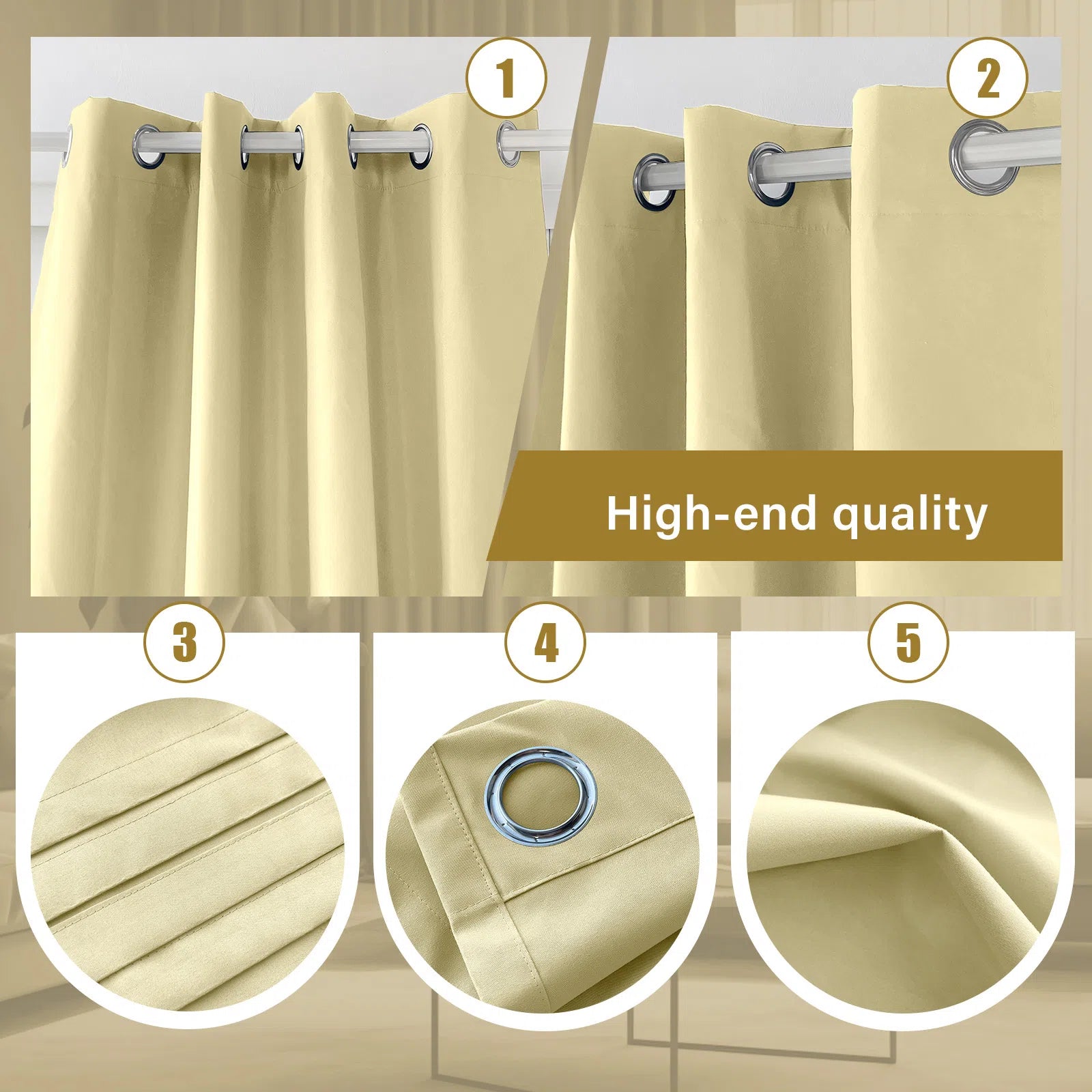 Personalisierter khakifarbener Vorhang, 100 % lichtundurchlässig, verleiht Ihrem Raum Wärme