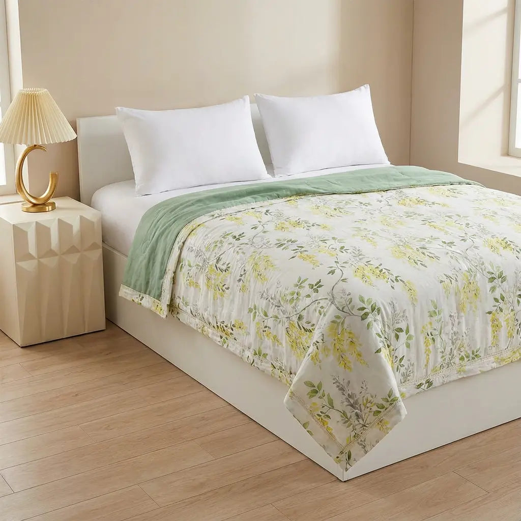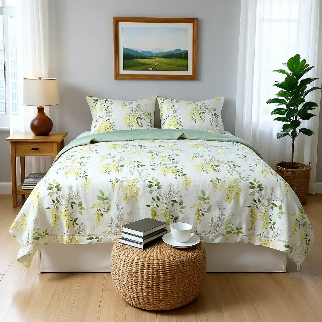 - Frischer grüner Blumendruck: Die lebendige grüne Basis mit aufwendigen Blumenmustern bringt naturnahen Charme in Ihr Schlafzimmer und sorgt sofort für eine lebendige, erfrischende Atmosphäre.