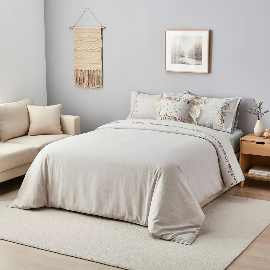 Unser Bettwäscheset aus doppellagigem Baumwollgewebe ist in einer Vielzahl wunderschöner Farben erhältlich, passend zu jeder Schlafzimmereinrichtung. Von sanften Neutraltönen bis hin zu kräftigen Farben – finden Sie den perfekten Farbton für Ihre Wohlfühloase.