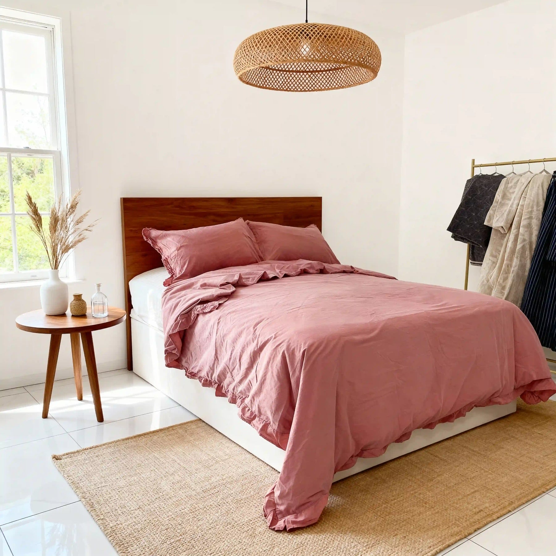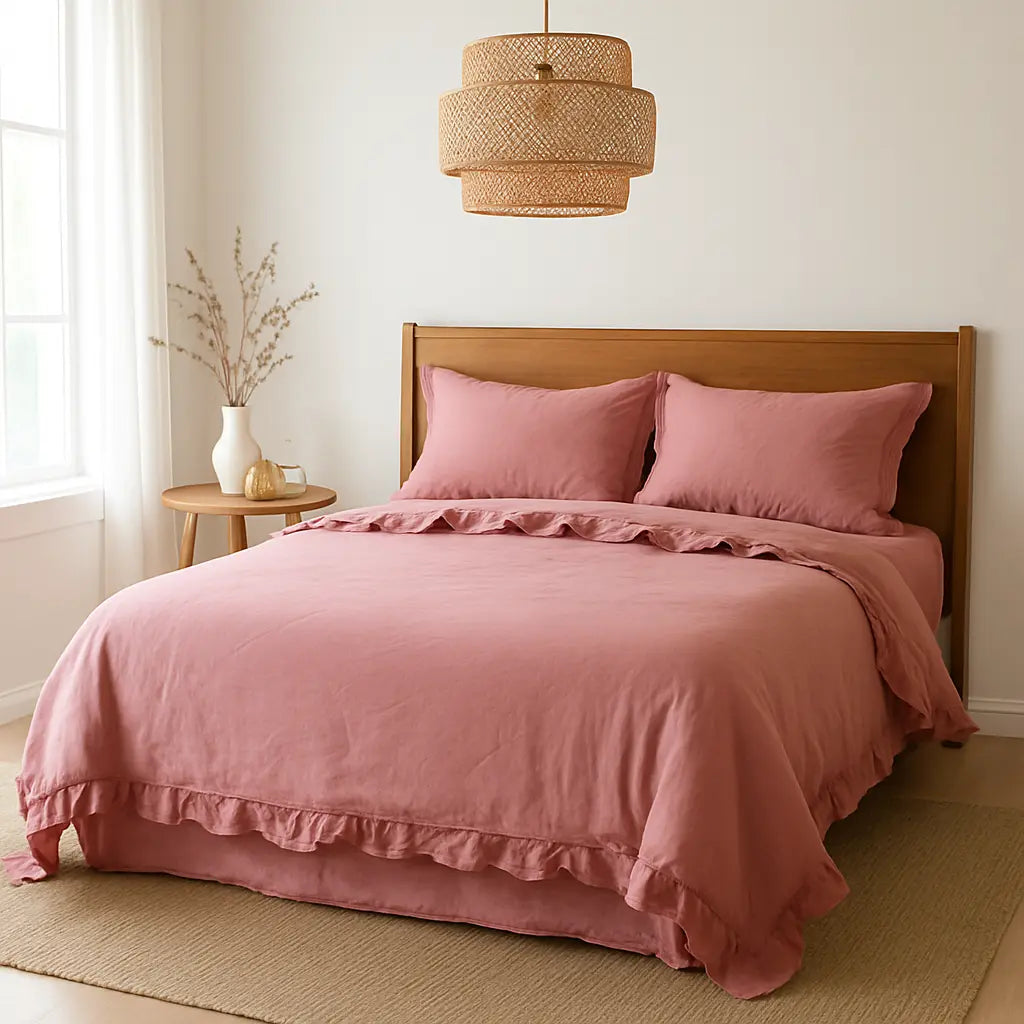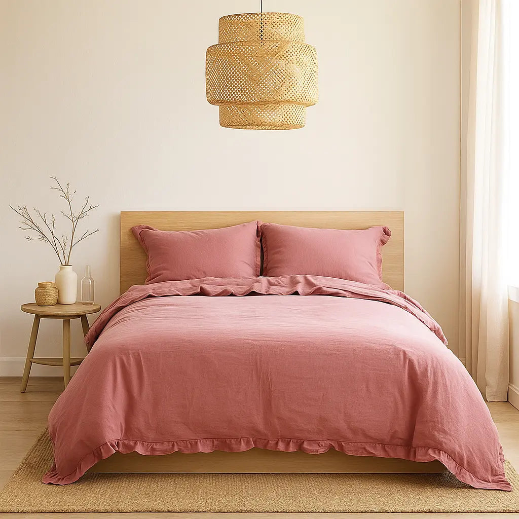 - Atmungsaktiver Naturstoff und zeitloses Rüschendesign werten jedes Schlafzimmer auf.