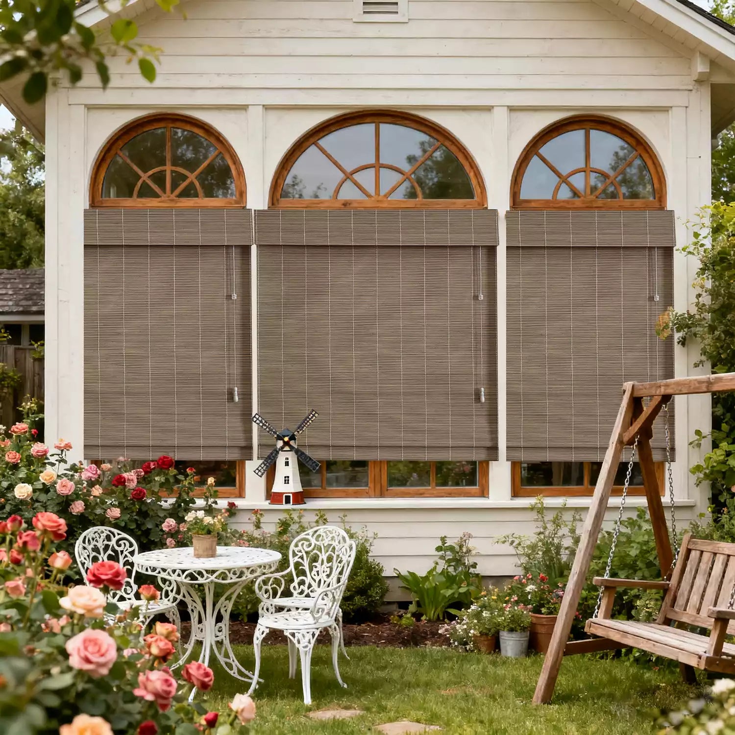 Verdunkelungsrollos, kabellos, Bambus-Raffrollos PS418