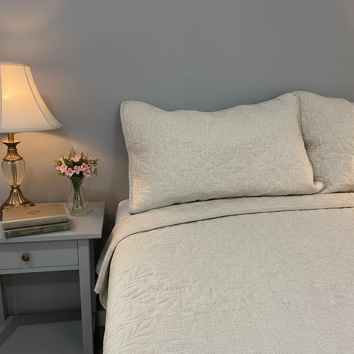 I love the structured yet soft feel. It holds its shape beautifully on the bed but is soft and pliable to the touch. A perfect combination.