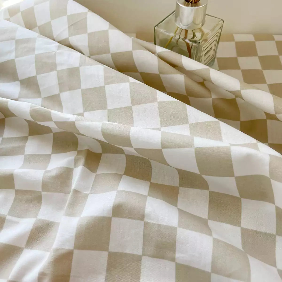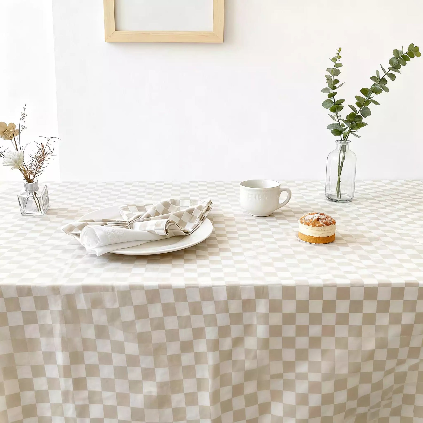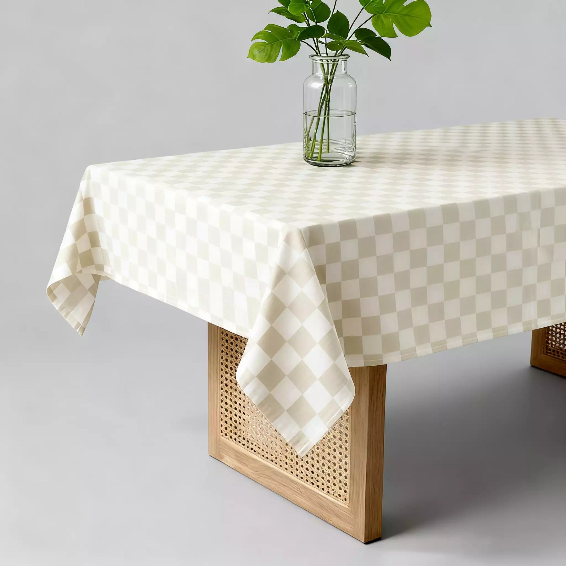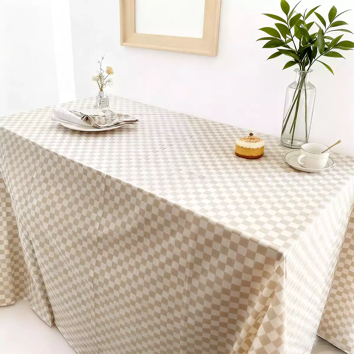 Beige karierte Tischdecke