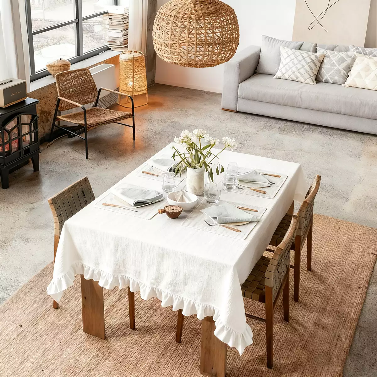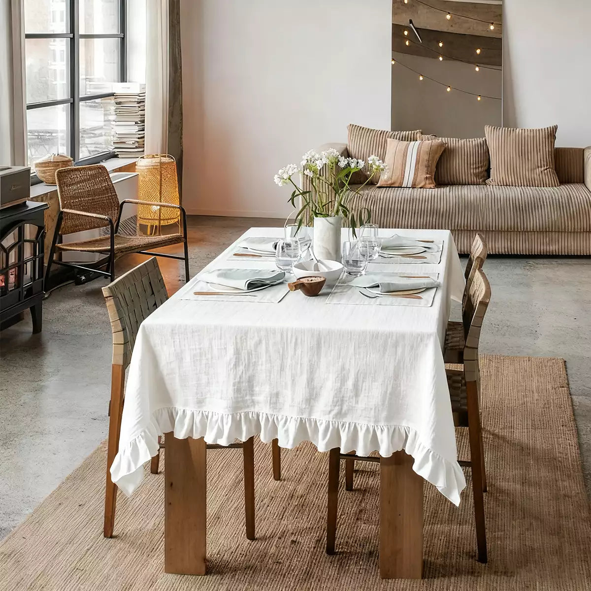 - Erhältlich in maßgeschneiderten Abmessungen, passend für runde, rechteckige, quadratische oder ovale Tische aller Größen – perfekt für das Essen zu Hause, Partys, Hochzeiten oder gewerbliche Veranstaltungsorte.
