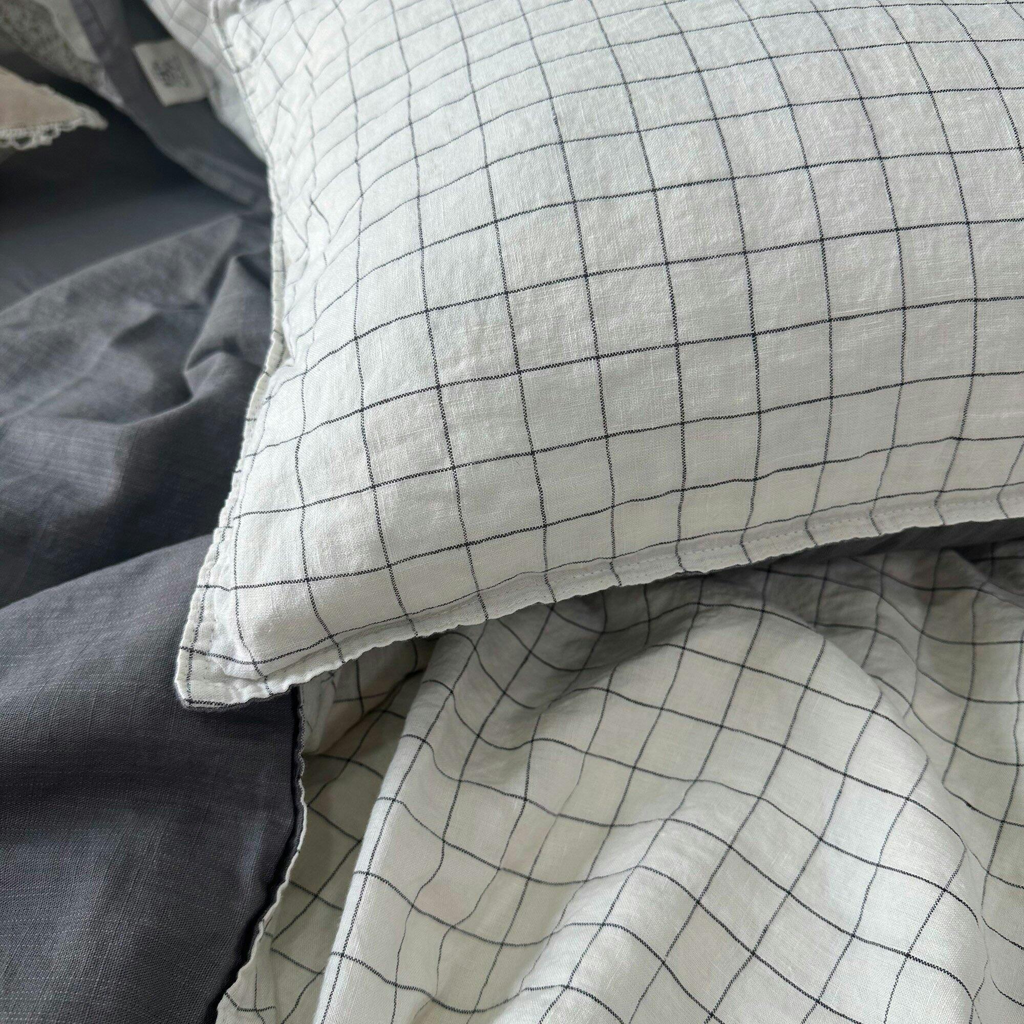 Plaid Duvet Cover Linen Texture Soft Breathable